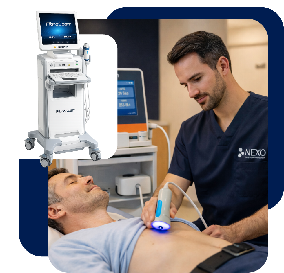 Examen FibroScan no invasivo para evaluar la salud hepática, realizado con tecnología de alta precisión y explicado por un equipo que entiende a las personas, no solo los resultados.